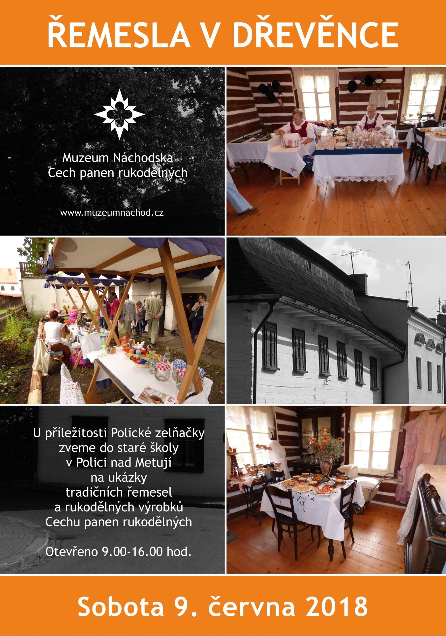 Cech panen rukodělných a Regionální muzeum v Náchodě srdečně zvou u příležitosti Polické zelňačky v sobotu 9. června 2018 do staré polické školy Dřevěnky. Členky cechu panen rukodělných připravily pro návštěvníky ukázky tradičních rukodělných technik a ukázky ukážka tradičních rukodělných výrobků. Starou školu lze navštívit od 9,00 do 16,00 hod.