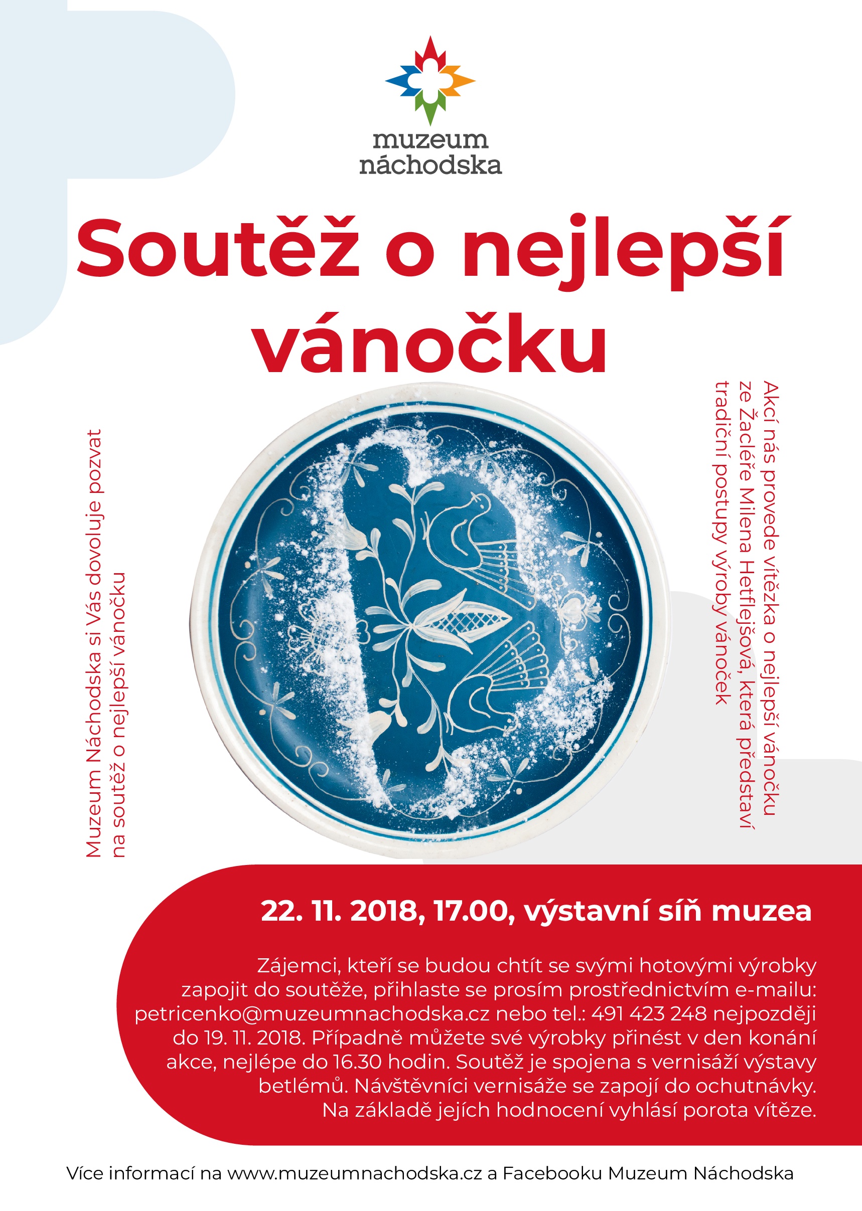 Muzeum Náchodska si Vás dovoluje pozvat na soutěž o nejlepší vánočku, která se uskuteční dne 22. 11. 2018 v 17.00 ve výstavní síni Muzea Náchodska.