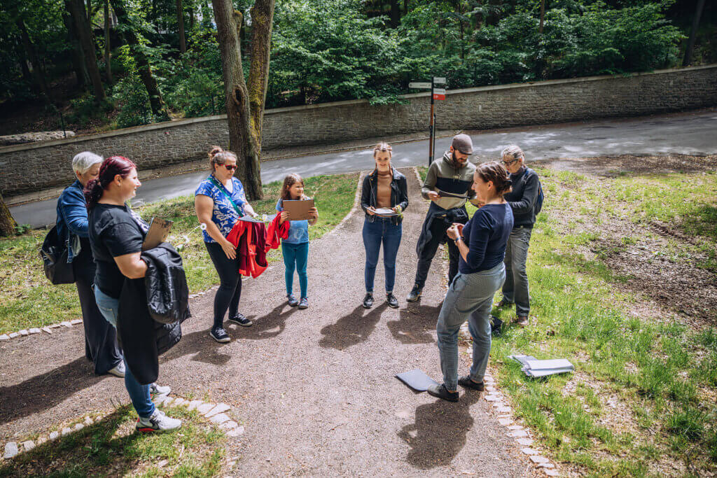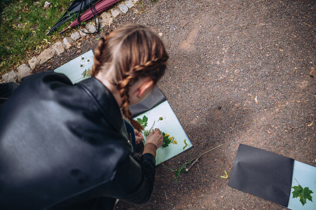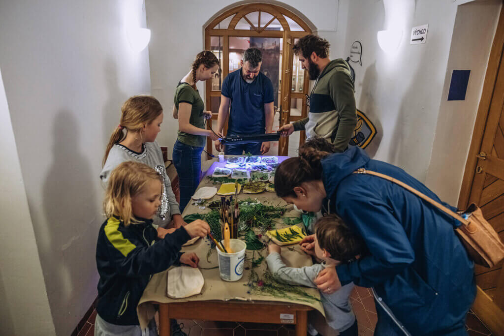 V dopoledních hodinách jsme pro vás měli připravený workshop, na kterém jste mohli experimentovat se zvuky. V odpoledních hodinách se poté uskutečnil workshop Náchodské údolí, během kterého jsme se společně prošli po zámeckém kopci a následně si vyzkoušeli techniku kyanotypie jak na papír, tak na látkové taštičky. Po celý den navíc probíhala terénní hra „Poznej zámecký kopec jinak“, během které jste si mohli vyzkoušet různé výtvarné techniky přímo na zámeckém kopci. Moc děkujeme správě zámku Náchod za to, že jsme hru na kopci mohli realizovat. Ve večerních hodinách poté proběhlo promítání filmu v prostorách galerie a také akustická hudební stezka s koncertem.