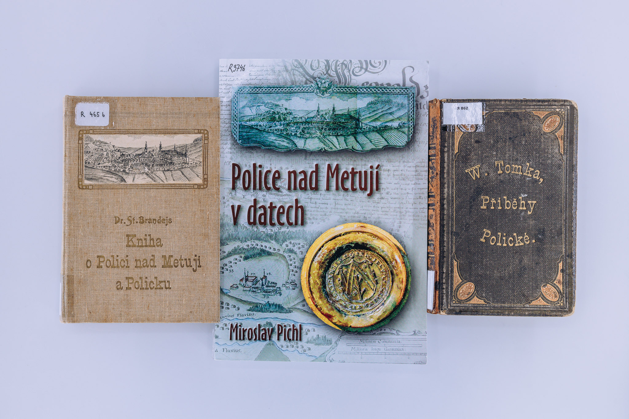 V první řadě je třeba uvést publikace věnující se souhrnně dějinám Police nad Metují, uložené především v regionálním knihovním fondu Muzea Náchodska (signatura R). Zde důležité místo zaujímá kniha Václava Vladivoje Tomka (1818–1905) Příběhy kláštera a města Police nad Metují (Praha 1881; R 862), která podává chronologicky dějiny města a kláštera od roku 1213 do roku 1880. Police nad Metují byla Tomkovým „druhým domovem“ a zdejší pobyty tvořily podstatnou část jeho života, o čemž může čtenář získat v muzejní knihovně více informací v publikaci Lydie Baštecké (1948–2021) s názvem Historik Václav Vladivoj Tomek a Policko (Police nad Metují 1997; R 219).
