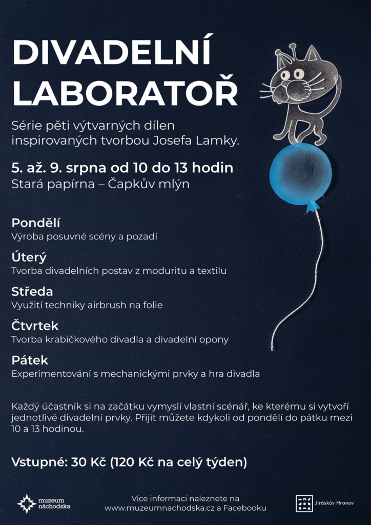 V rámci festivalu Jiráskův Hronov se opět uskuteční divadelní laboratoř. Letošní ročník zaměříme na tvorbu hronovského rodáka Josefa Lamky. Během celého týdne se inspirujeme jeho tvorbou. Každý den od pondělí do pátku budeme zkoušet jinou aktivitu spojenou s divadlem a divadelnictvím.