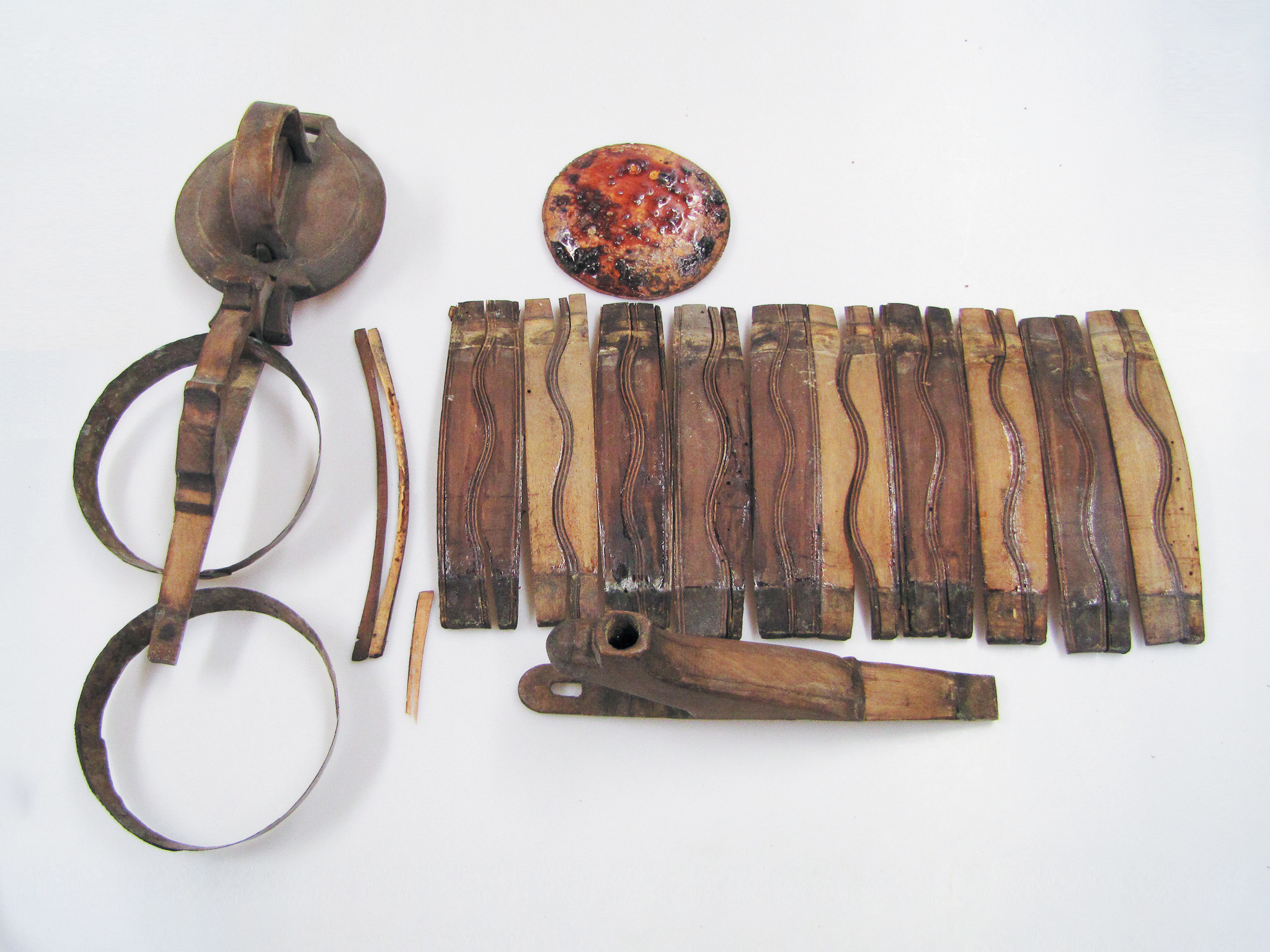Stav předmětů nebyl dobrý. Na povrchu byla silná vrstva prachu a spoje byly místy velmi rozvolněné. U některých nádob došlo k rozpadu a promíchání součástí mezi sebou. Zpevňující obruče byly poškozené. Rákosové se rozvolnily a kovové měly mírnou korozi. Vysmolená vnitřní část nádob byla popraskaná, drolivá a na některých místech chyběla. Bylo tedy zapotřebí přistoupit ke kompletnímu restaurování.