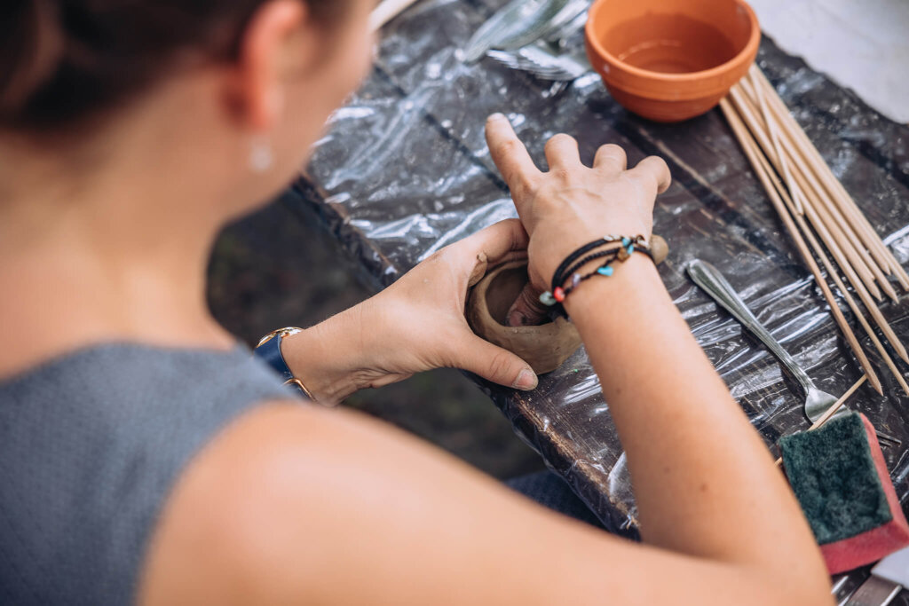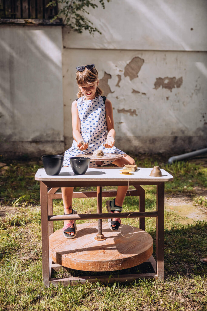 V sobotu 7. srpna se v Polici nad Metují konala tradiční Kvíčerovská pouť, během které jste si ve Staré škole Dřevěnce mohli vyzkoušet práci s hrnčířským kruhem a hlínou. Po celý den byl připraven program pro děti i dospělé, během kterého vznikla řada hezkých výtvorů. Mohli jste si vytvořit hrnečky, vázičky nebo cokoli, co vás napadlo. Pokud jste si netroufli na práci s hrnčířským kruhem, mohli jste si alespoň něco vymodelovat ze samotvrdnoucí hlíny. A jelikož bylo krásné počasí, tak se celý program odehrál na zahrádce za Dřevěnkou.