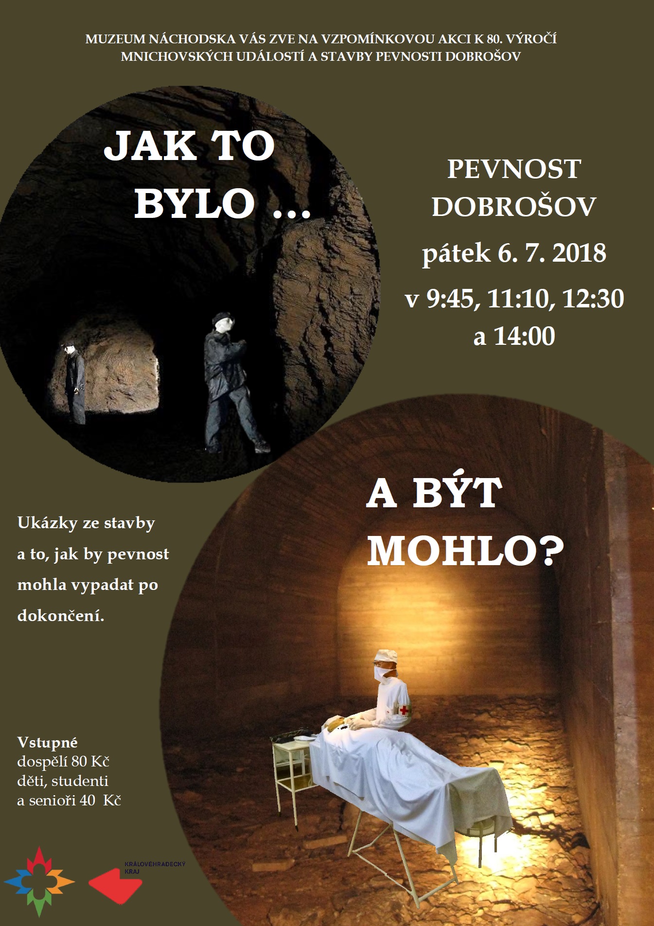Muzeum Náchodska vás zve na vzpomínkovou akci k 8.0. výročí Mnichovských událostí a stavby pevnosti Dobrošov. Ukázky ze stavby a to, jak by pevnost mohla vypadat po dokončení.