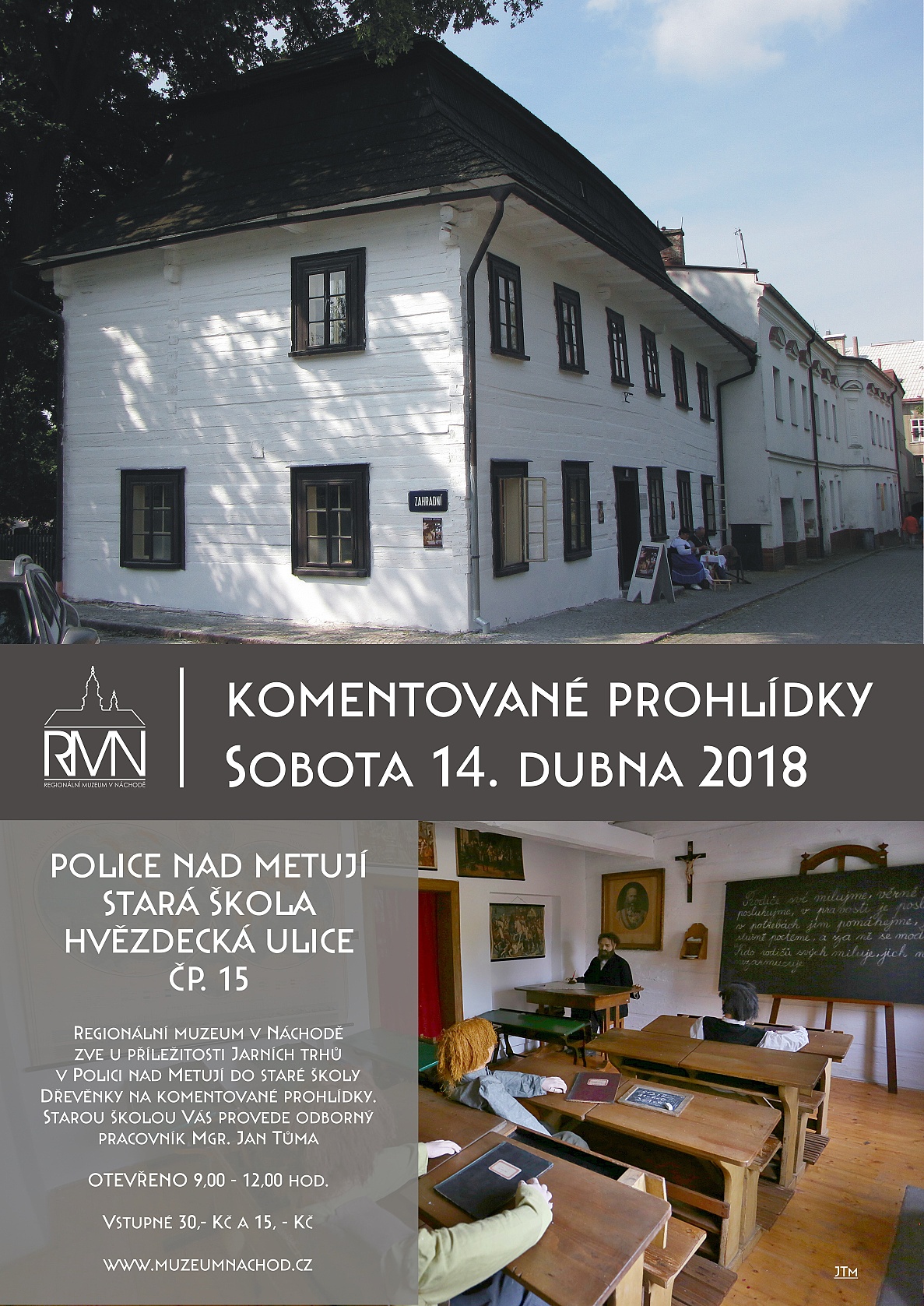Dřevěnka Regionální muzeum v Náchodě zve v sobotu 14. 4. 2018 u příležitosti Jarních trhů do staré školy Dřevěnky na komentované prohlídky. Prohlídky budou probíhat od 9,00 do 12,00 hod. Starou školou Vás provede odborný pracovník Regionálního muzea v Náchodě Mgr. Jan Tůma. Vstupné 30,- Kč a 15, - Kč