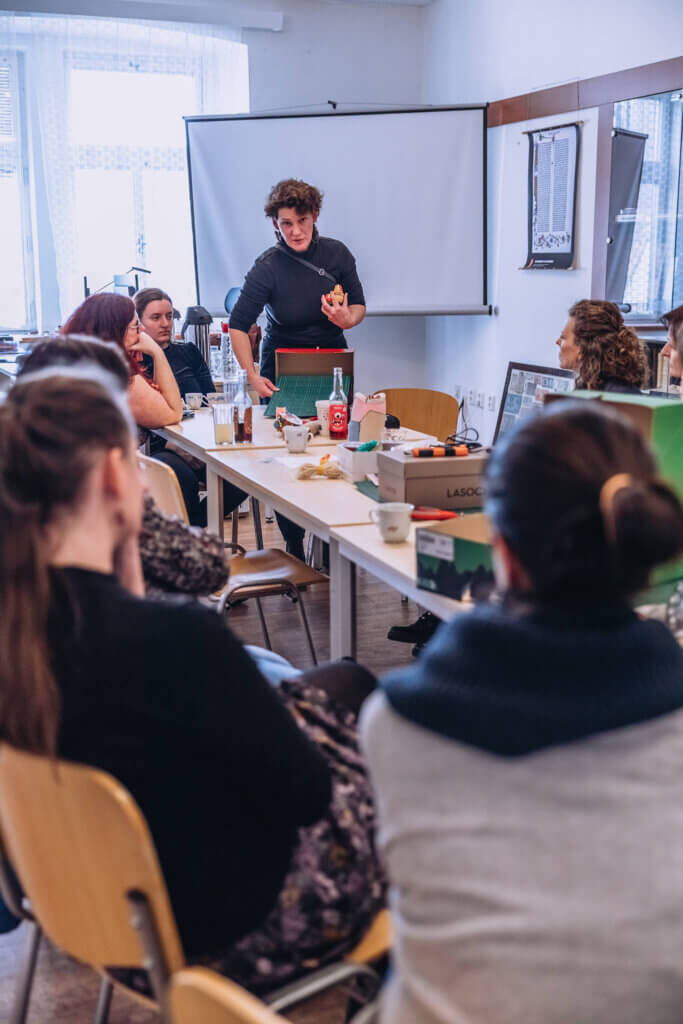 V odpoledním bloku účastníci absolvovali workshop s Ilonou Mach nazvaný „Na zkoušku divadelním scénografem“. Během něho se dozvěděli, jak probíhá proces výroby scény, kde se tvoří kulisy, jak se vyrábějí rekvizity a spoustu dalšího. Lektorka také představila různé kreativní postupy a praktické tipy a účastníci si ve skupinkách vyzkoušeli návrh vlastní scénografie.