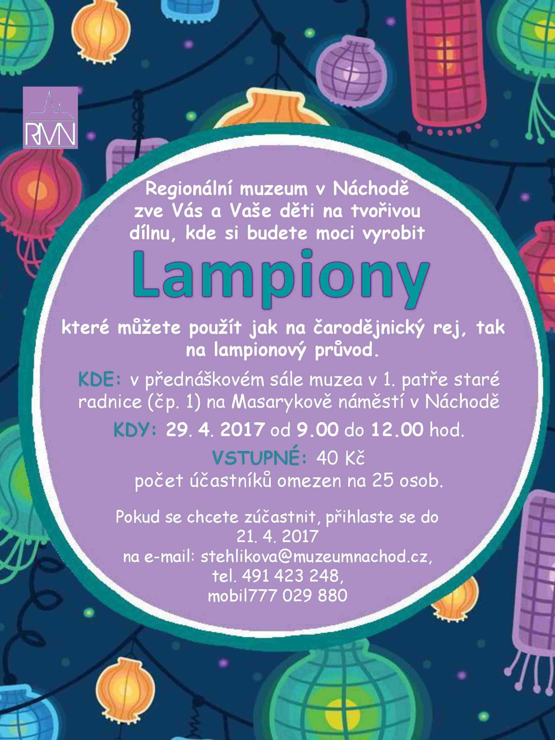 Regionální muzeum v Náchodě zve vás a vaše děti na tvořivou dílničku, kde si budete moci vyrobit LAMPIONY. Ty pak můžete použít jak na čarodějnický rej, tak na lampionový průvod.