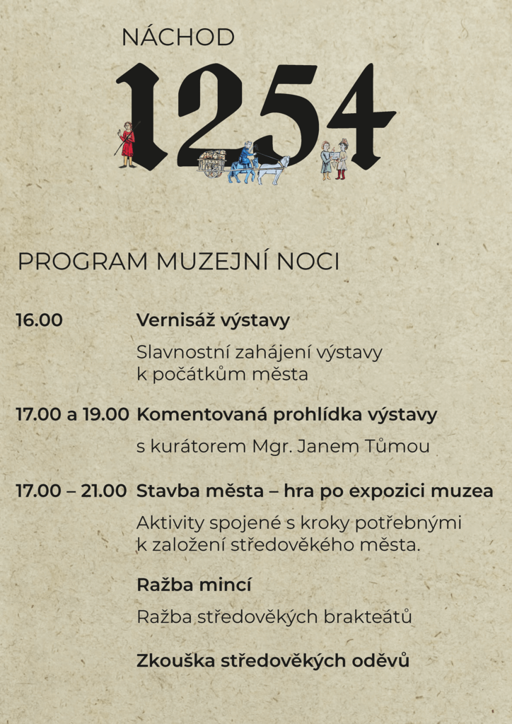 V rámci vernisáže výstavy Náchod 1254 se zapojíme do festivalu muzejních nocí. Program je zaměřen pro děti i dospělé.