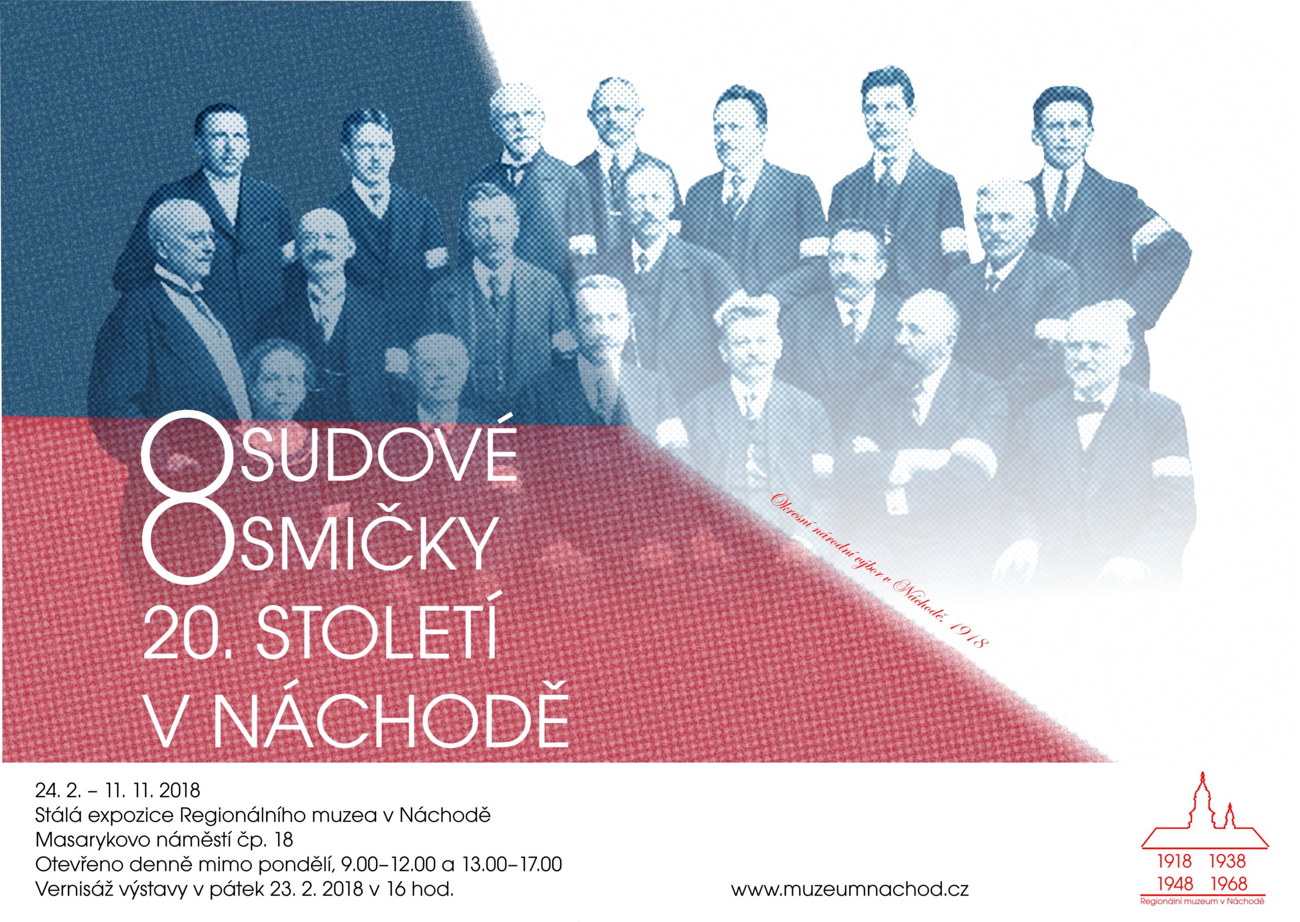 Do budovy stálé expozice Regionálního muzea v Náchodě na Masarykově náměstí čp. 18 srdečně zveme zájemce k návštěvě výstavy Osudové osmičky 20. století v dějinách Náchoda, která bude zahájena vernisáží 23. února 2018 v 16 hodin. Výstava mapuje nejdůležitější milníky našich dějin zakončené osmičkou (1918, 1938, 1948 a 1968), připomene události, k nimž v naší vlasti a na Náchodsku došlo a díky desítkám trojrozměrných předmětů, z nichž některé budou vystaveny zcela poprvé, návštěvníky provede pohnutými událostmi 20. století. Výstava potrvá do listopadu 2018.