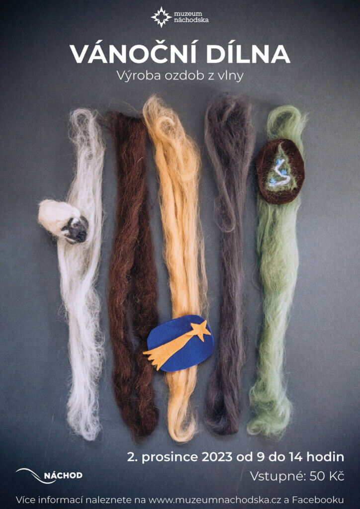 Muzeum Náchodska vás zve na vánoční tvořivou dílnu, která se uskuteční 2. prosince od 9 do 14 hodin v prostorách Staré radnice (čp. 1) na Masarykově náměstí v Náchodě. Společným tématem pro letošní dílnu je vlna. Budete si moct vytvořit různobarevné ozdoby způsoby jako je například suché plstění jehlou nebo vystřihování a vrstvení filcu či jejich kombinace.