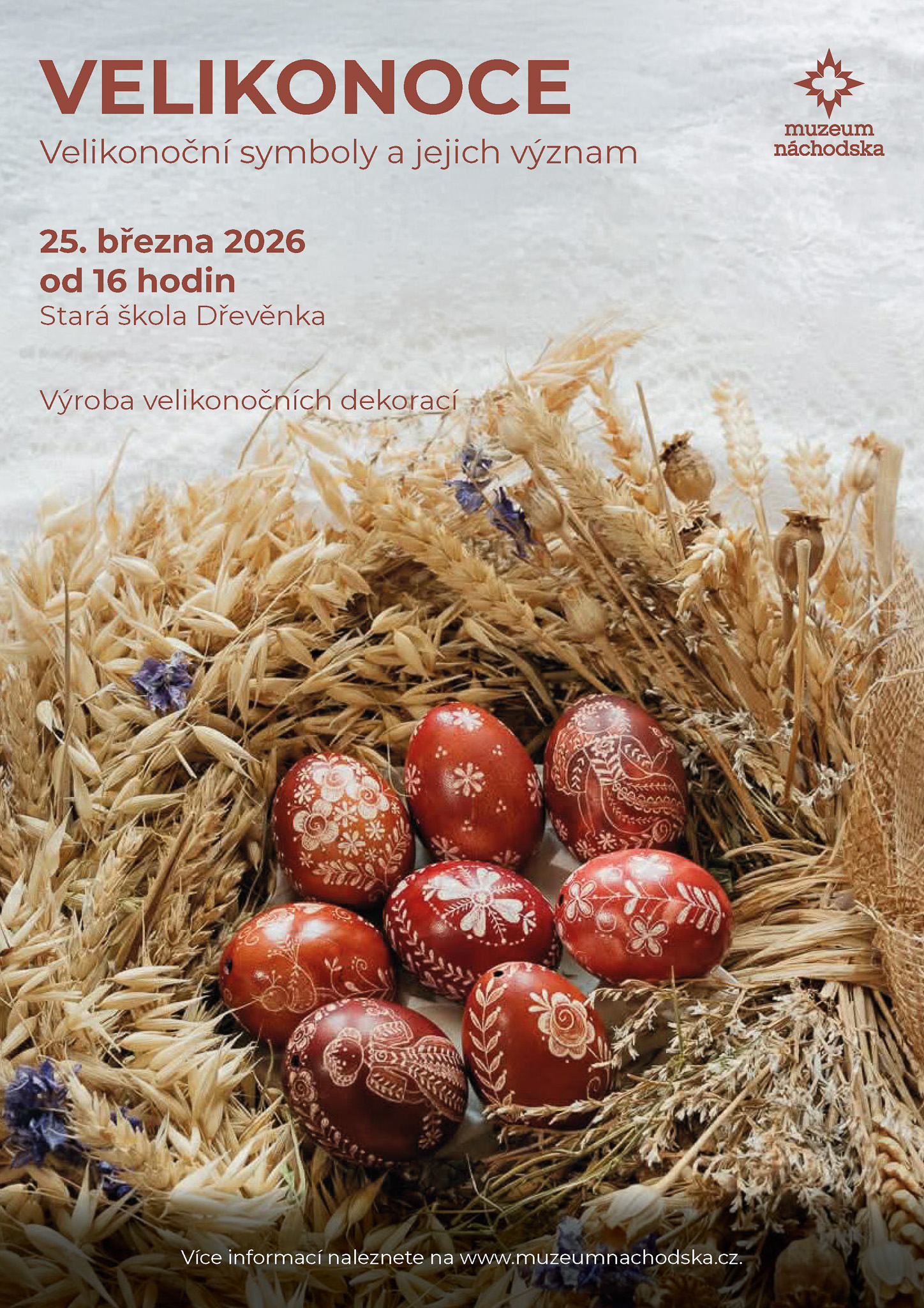 Zveme vás do roubenky Staré školy Dřevěnka na tradiční oslavu svátků jara. Připravili jsme pro vás program zaměřený na velikonoční symboly a jejich význam. Dozvíte se, proč k Velikonocům neodmyslitelně patří vajíčka, pomlázky či beránek. Součástí odpoledne bude i dílna, kde si budete moci vyrobit vlastní velikonoční dekorace a odnést si kousek jarní atmosféry domů. Akce je ideální příležitostí, jak společně strávit čas v krásném prostředí.