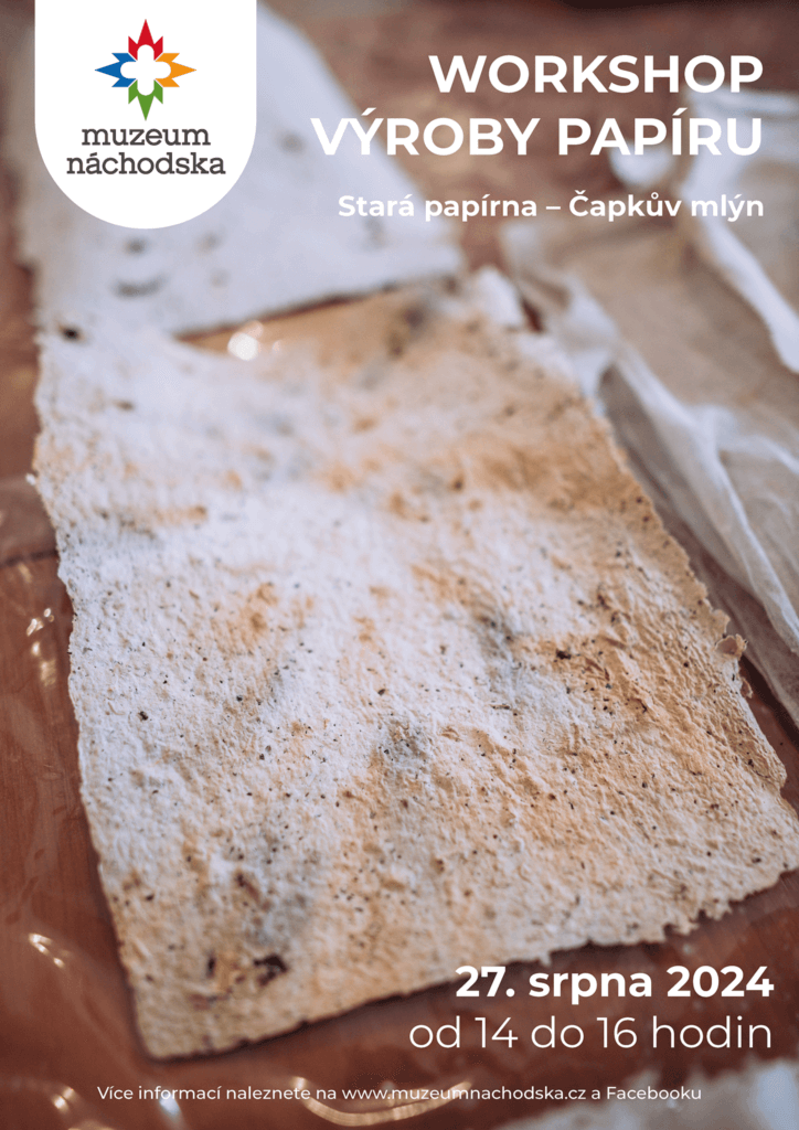 Série workshopů výroby ručního papíru ve Staré papírně – Čapkově mlýně v Hronově bude pokračovat i v létě. Přijďte si 27. července vyzkoušet, jak se dá oživit starý nepotřebný papír a vyrobte si z něho krásný recyklovaný. Vstupné na akci je 50 Kč.