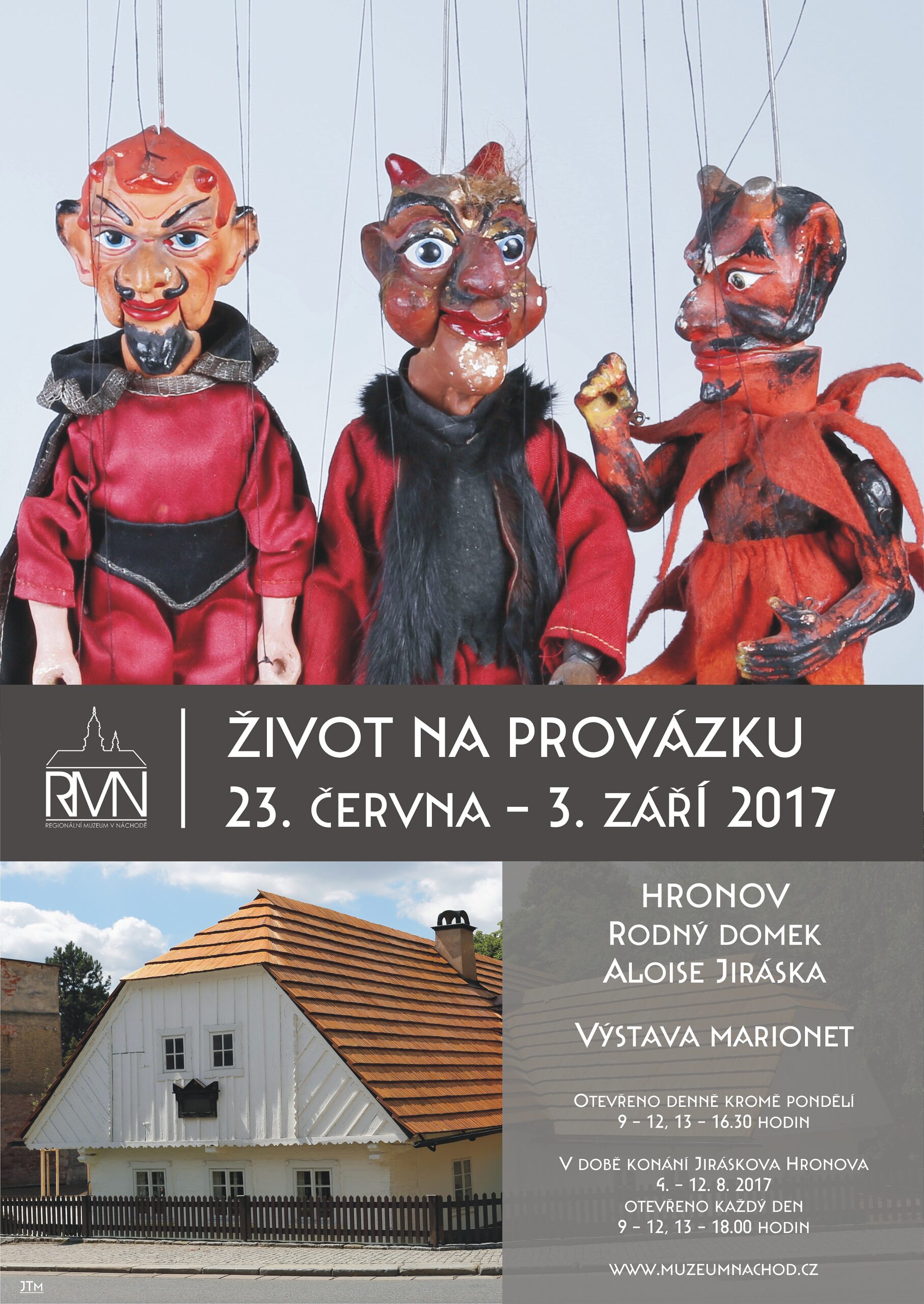Regionální muzeum v Náchodě Vás zve od 23. června do 3. září 2017 do Rodného domku Aloise Jiráska v Hronově na výstavu marionet nazvanou „Život na provázku“.