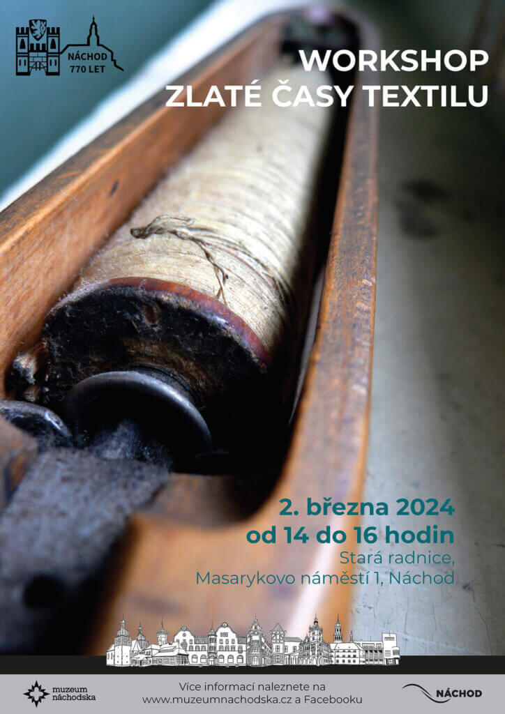 Druhý workshop ze série akcí spojených s oslavami 770 let od první písemné zmínky o městě Náchodě proběhne v sobotu 2. března 2024 od 14 do 16 hodin v prostorách přednáškového sálu Staré radnice (čp. 1) na Masarykově náměstí v Náchodě. V první části se seznámíme s rozvojem města způsobeným industrializací výroby textilu. Ve druhé části bude možné vytvořit vlastní příběh inspirovaný pokrokem této doby, ať už bude založen na skutečnosti nebo utopistické vizi.